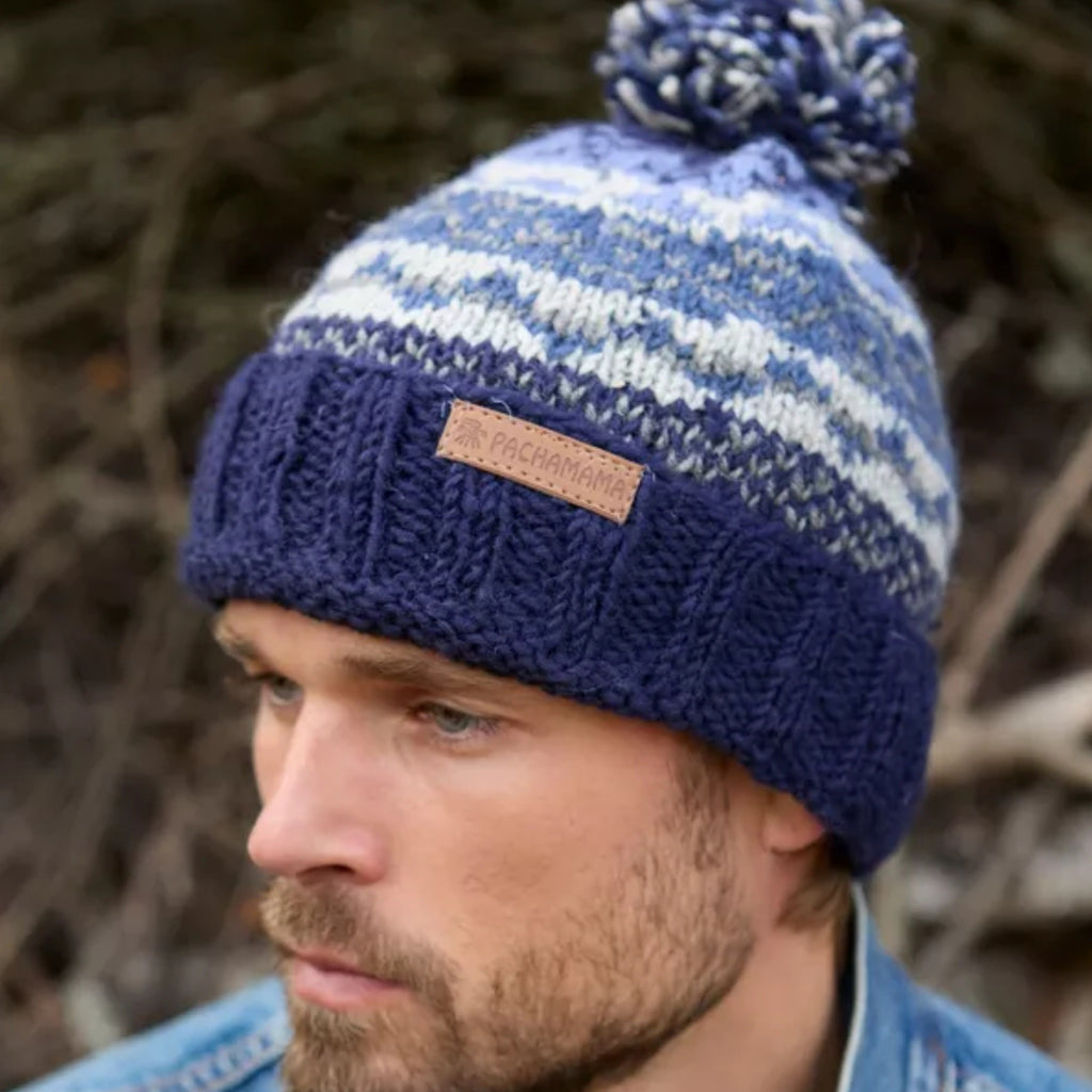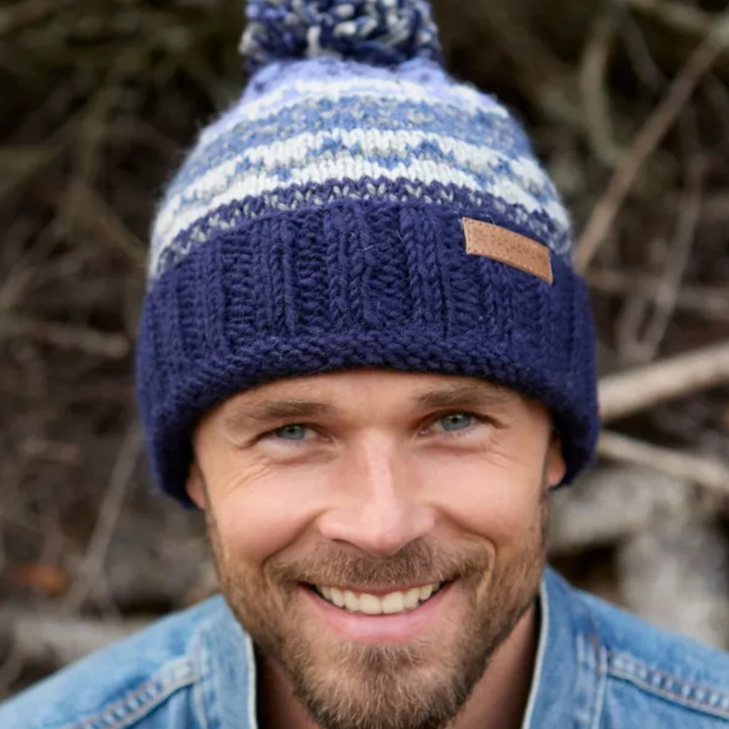Mens Pachamama Classic Fairisle Bobble Beanie Hat 'Navy'