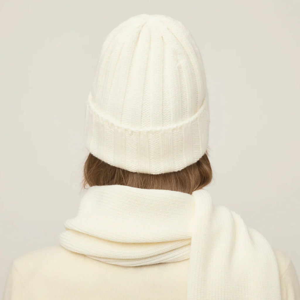 Tilley Merino Wool Chunky Ribbed Beanie Hat 'Cream'
